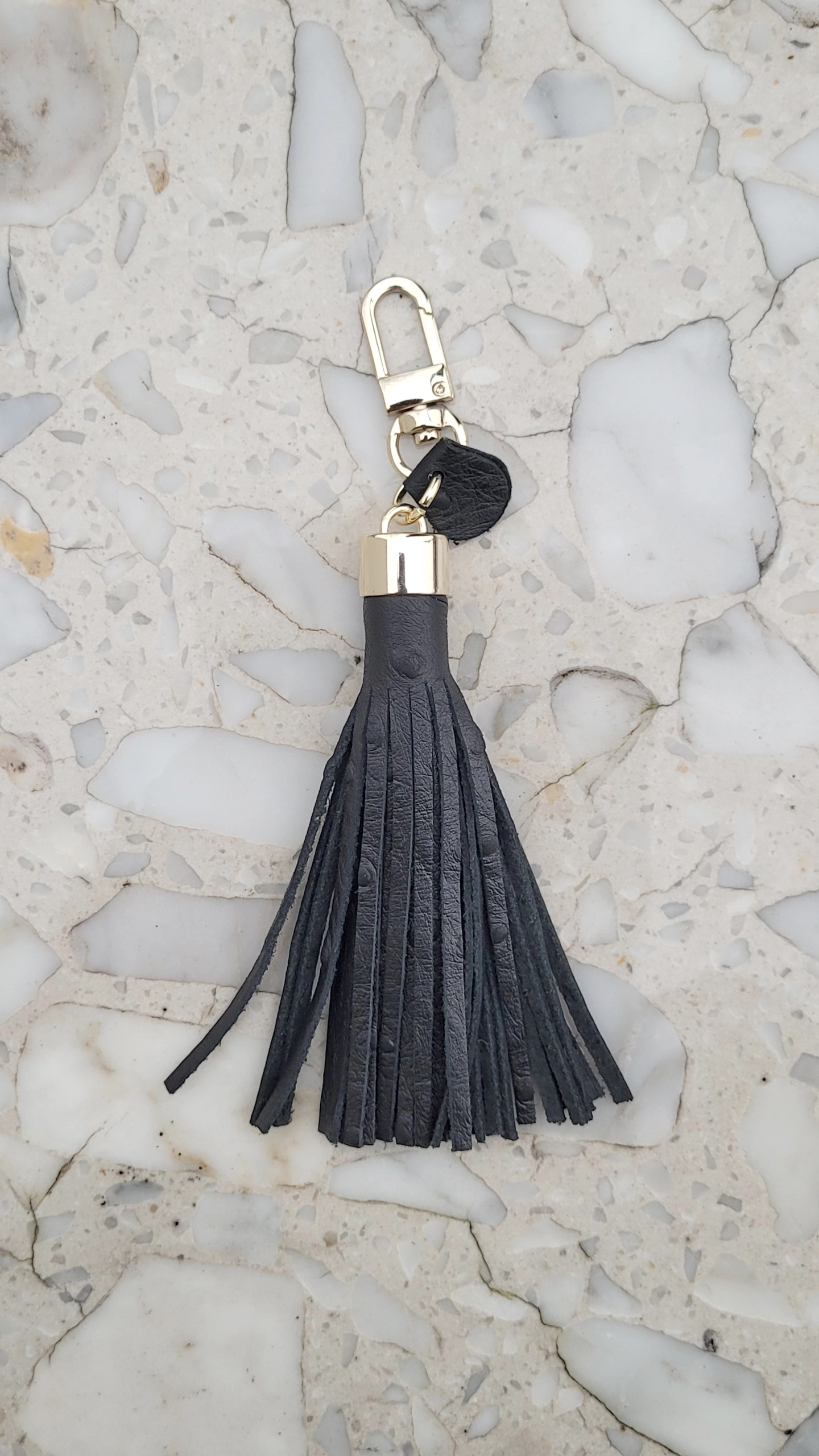 Skórzany frędzel, ręcznie wykonany brelok z włoskiej skóry naturalnej. Skóra bydlęca z widoczną strukturą groszku.