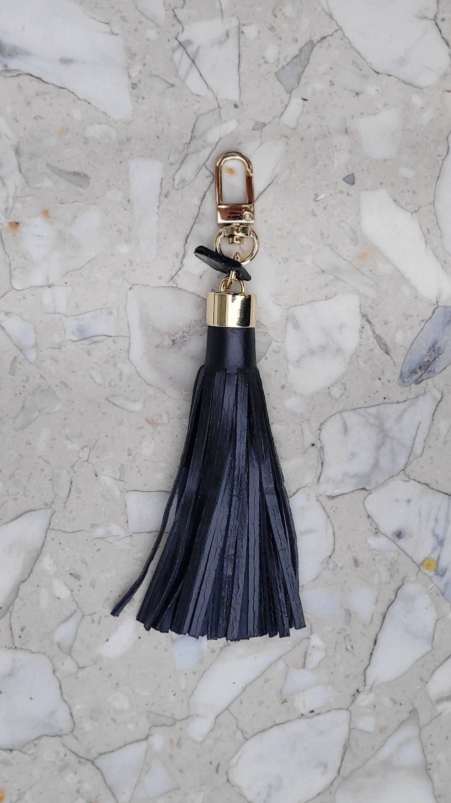 Skórzany frędzel, ręcznie wykonany brelok z włoskiej skóry naturalnej. Skóra bydlęca z widoczną strukturą pęknięć.