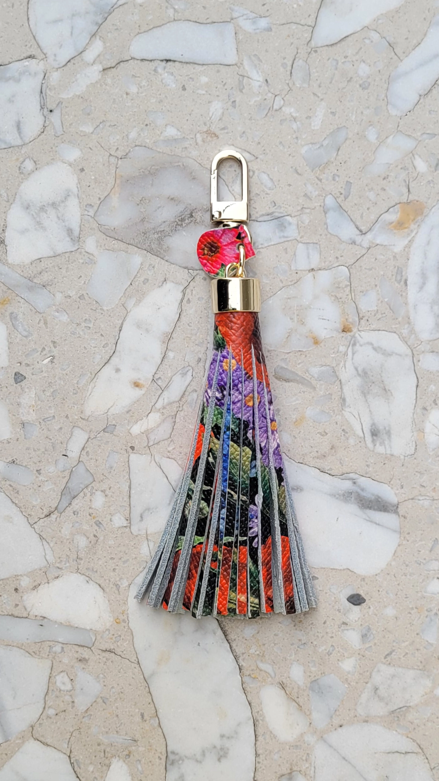 Kolorowy frędzel, ręcznie wykonany brelok z włoskiej skóry naturalnej. Skóra bydlęca saffiano.