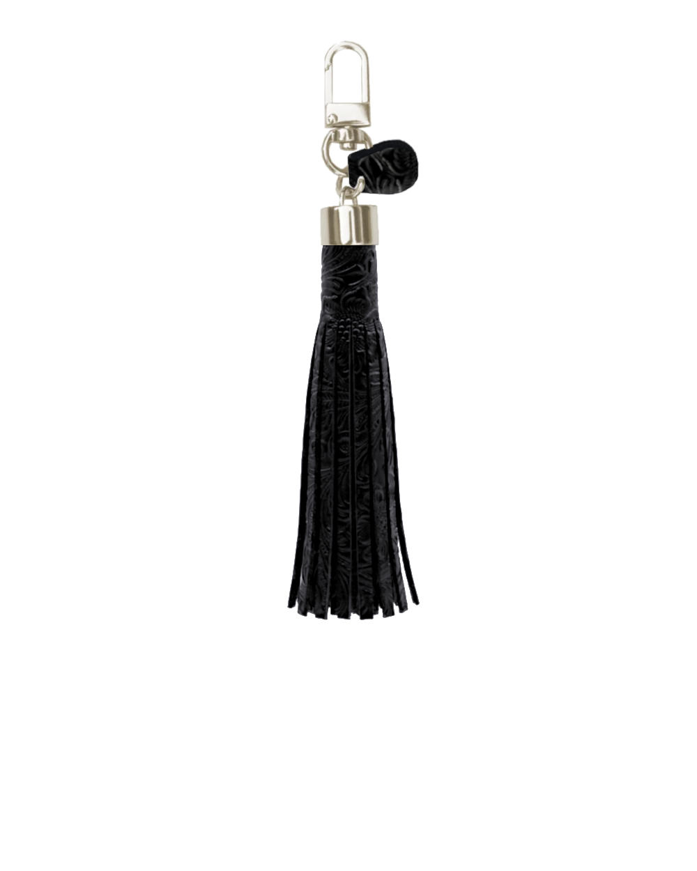 Frędzel skórzany do torebki Black Wild Roses SIMPLE to czarny krótki chwost do torebki modułowej marki Make Yourself. Skórzany breloczek zawiesisz również przy kluczach lub portfelu.