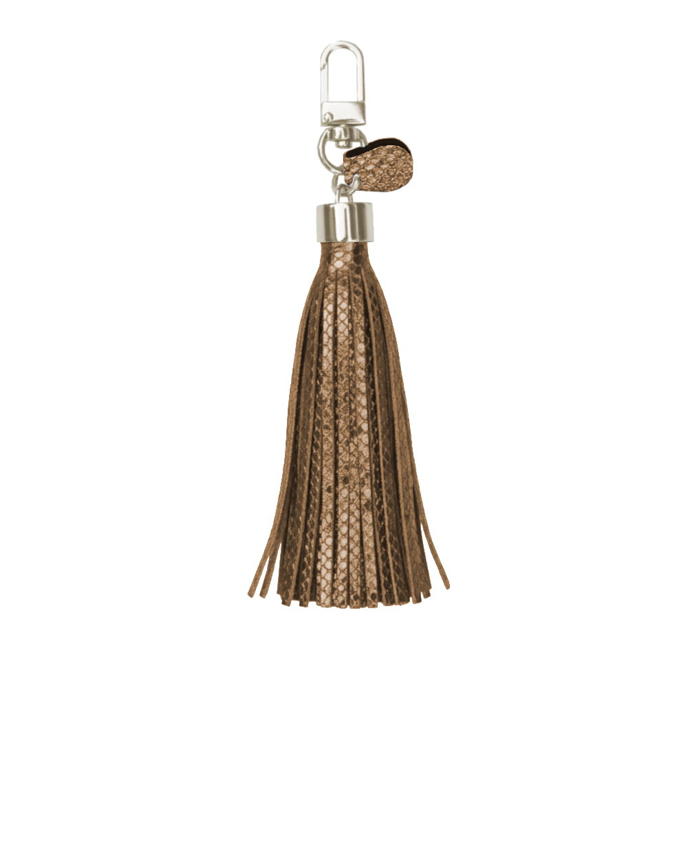 Metalizowany frędzel, ręcznie wykonany brelok z włoskiej skóry naturalnej. Włoska skóra bydlęca metalizowana.