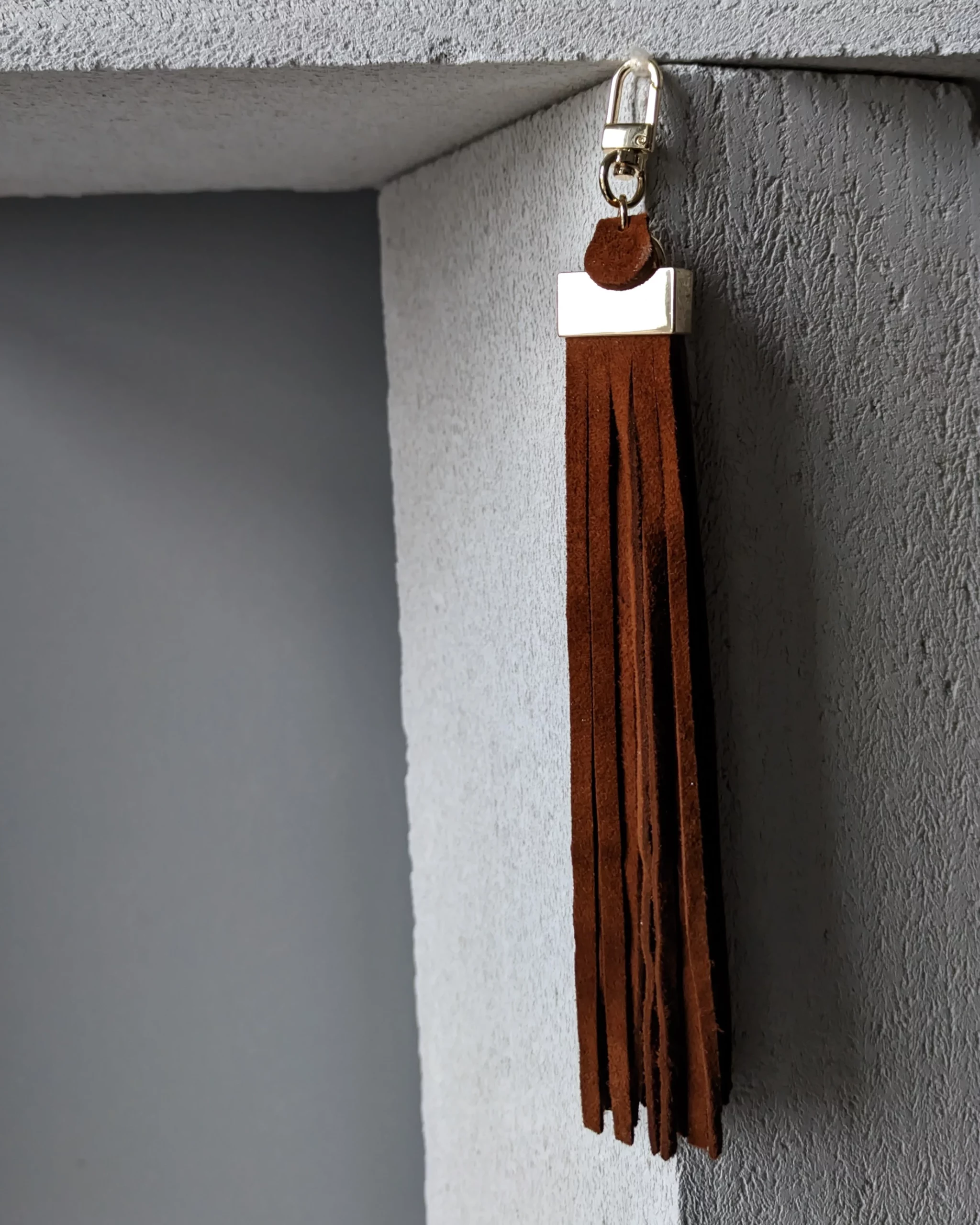 Ręcznie wykonany zamszowy frędzel do torebki z włoskiej skóry naturalnej. Skóra bydlęca zamszowa.