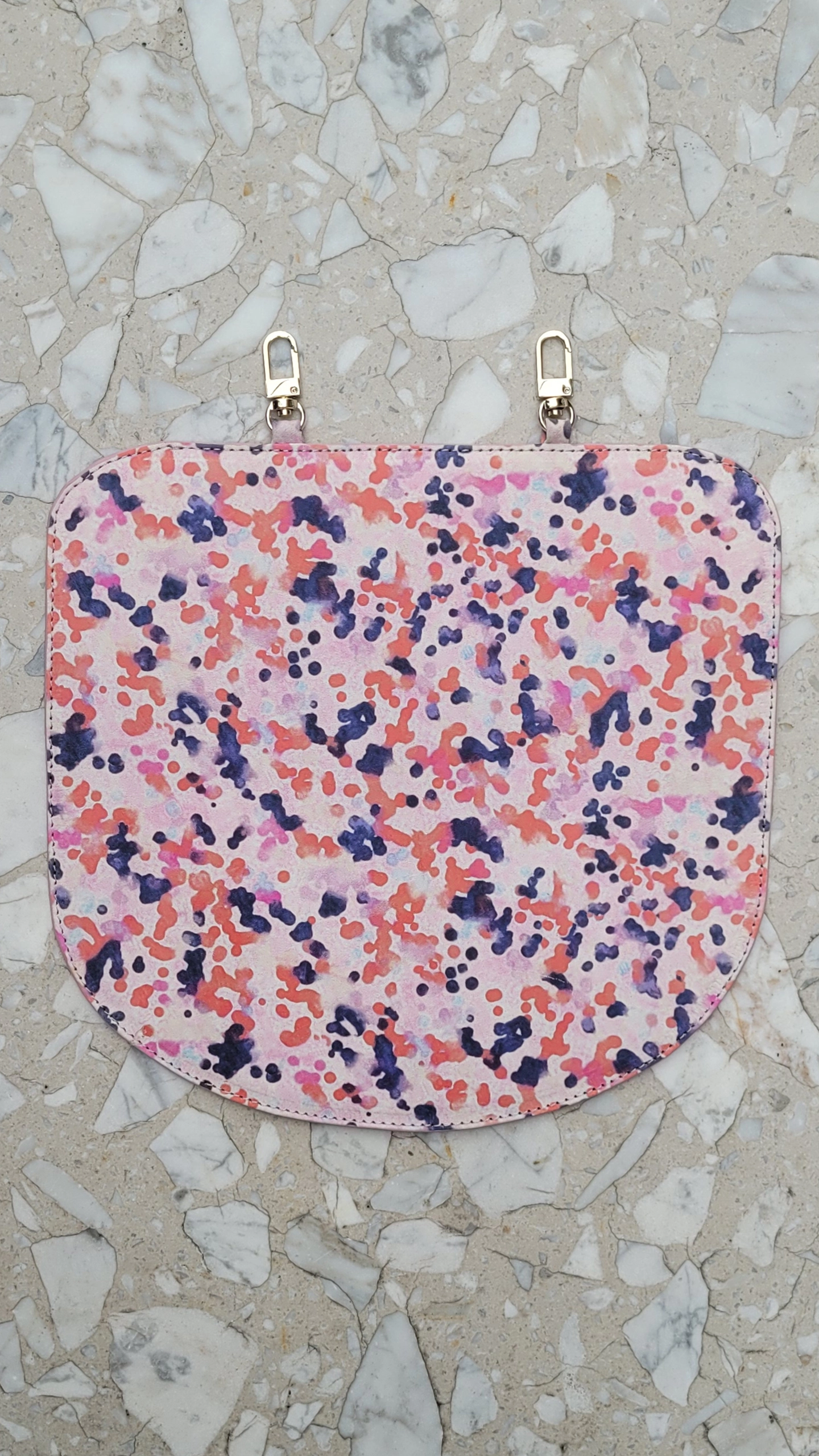 KLAPA Aquarelle do torebek modułowych Make Yourself. Torebkę z klapą stworzysz z modeli bazowych LUNA, CUBE dzięki wszytym karabińczykom. Nie jest potrzebny żaden dodatkowy element czy złączka do zamocowania klapy do torebki. Wszystkie klapy stębnowane (przeszyte) są po wierzchu, dzięki czemu zapinasz torebkę nie tylko na zamek, ale i na niewidoczny magnes w klapie. Wymienna, skórzana, wielokolorowa klapa do torebki personalizowanej.