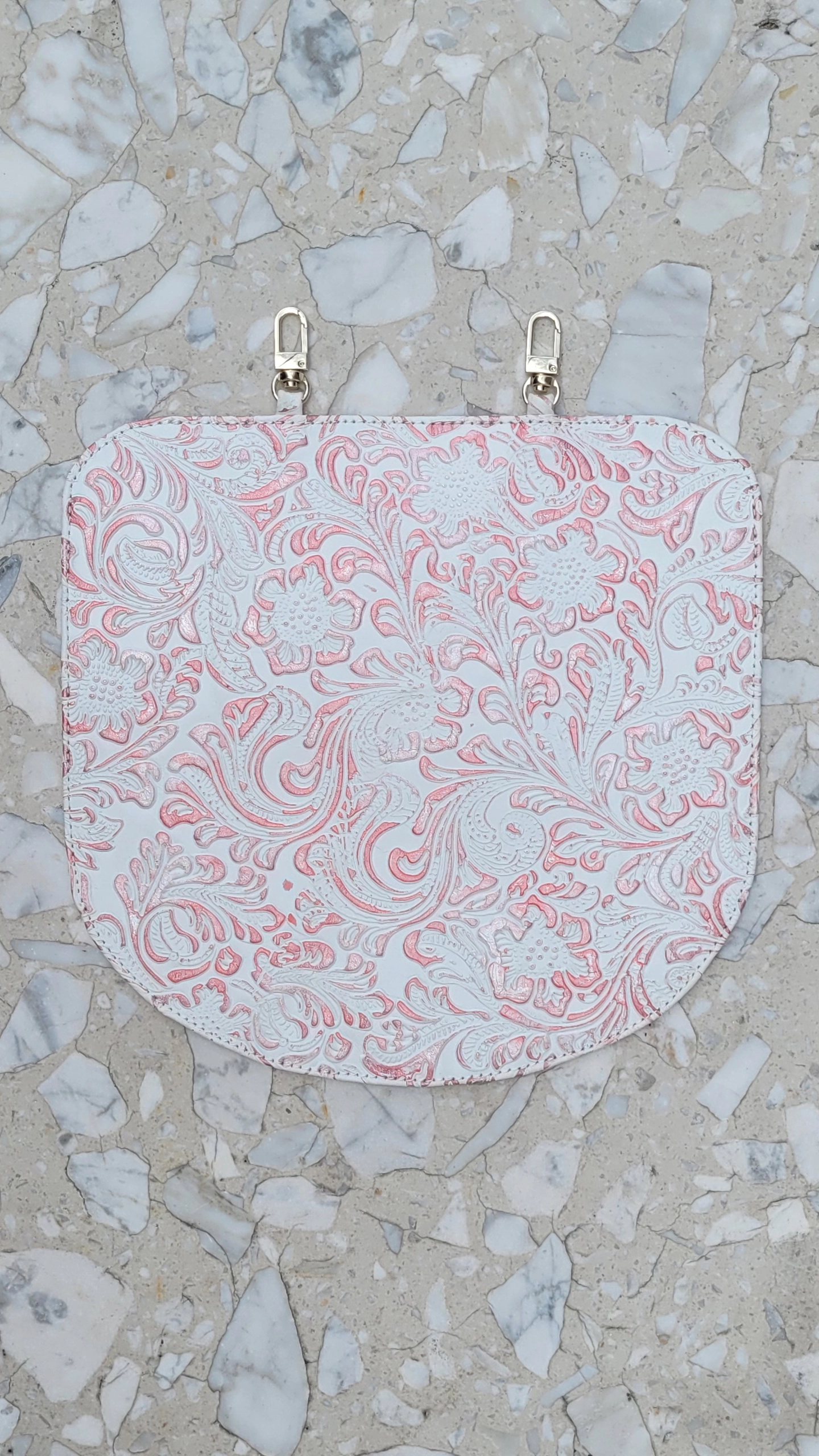 KLAPA MOON White Wild Rosesdo torebek modułowych Make Yourself. Torebkę z klapą stworzysz z modeli bazowych LUNA, CUBE dzięki wszytym karabińczykom. Nie jest potrzebny żaden dodatkowy element czy złączka do zamocowania klapy do torebki. Wszystkie klapy stębnowane (przeszyte) są po wierzchu, dzięki czemu zapinasz torebkę nie tylko na zamek, ale i na niewidoczny magnes w klapie. Wymienna, skórzana, biała klapa do torebki personalizowanej.