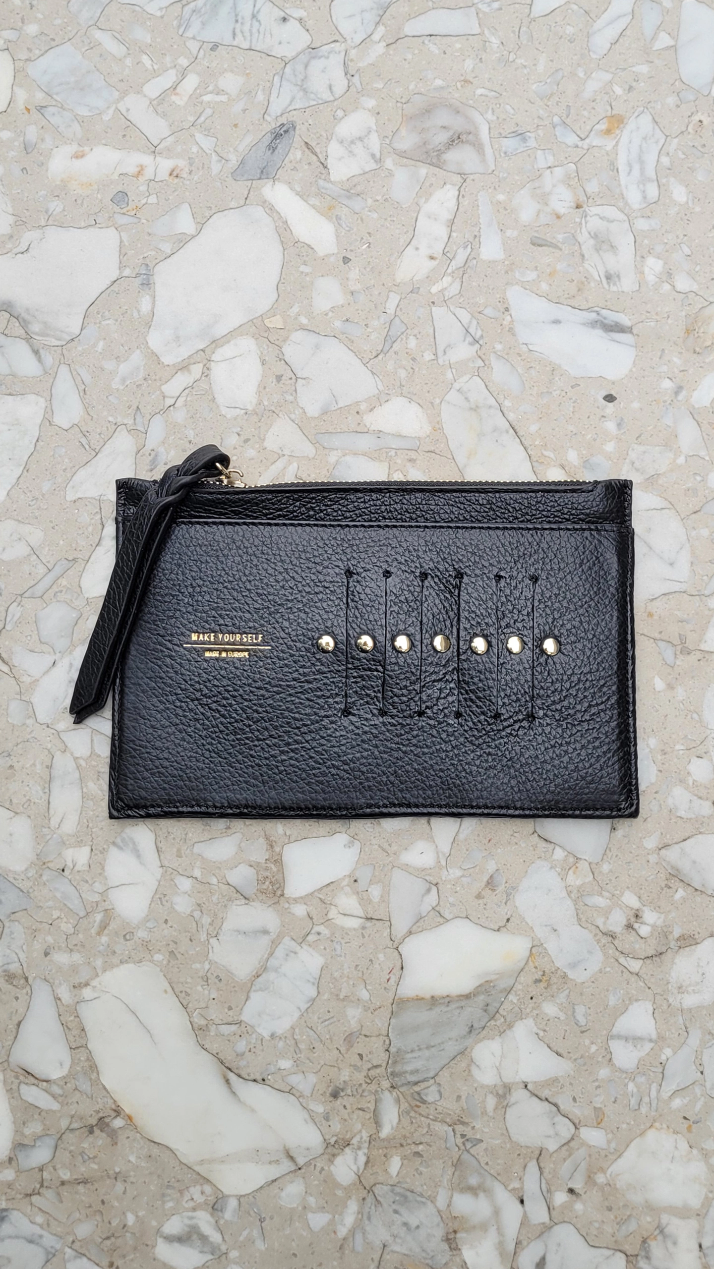 Skórzana czarna torebka saszetka Pocket Black marki Make Yourself. Mała płaska torebka, kosmetyczka, etui na karty.