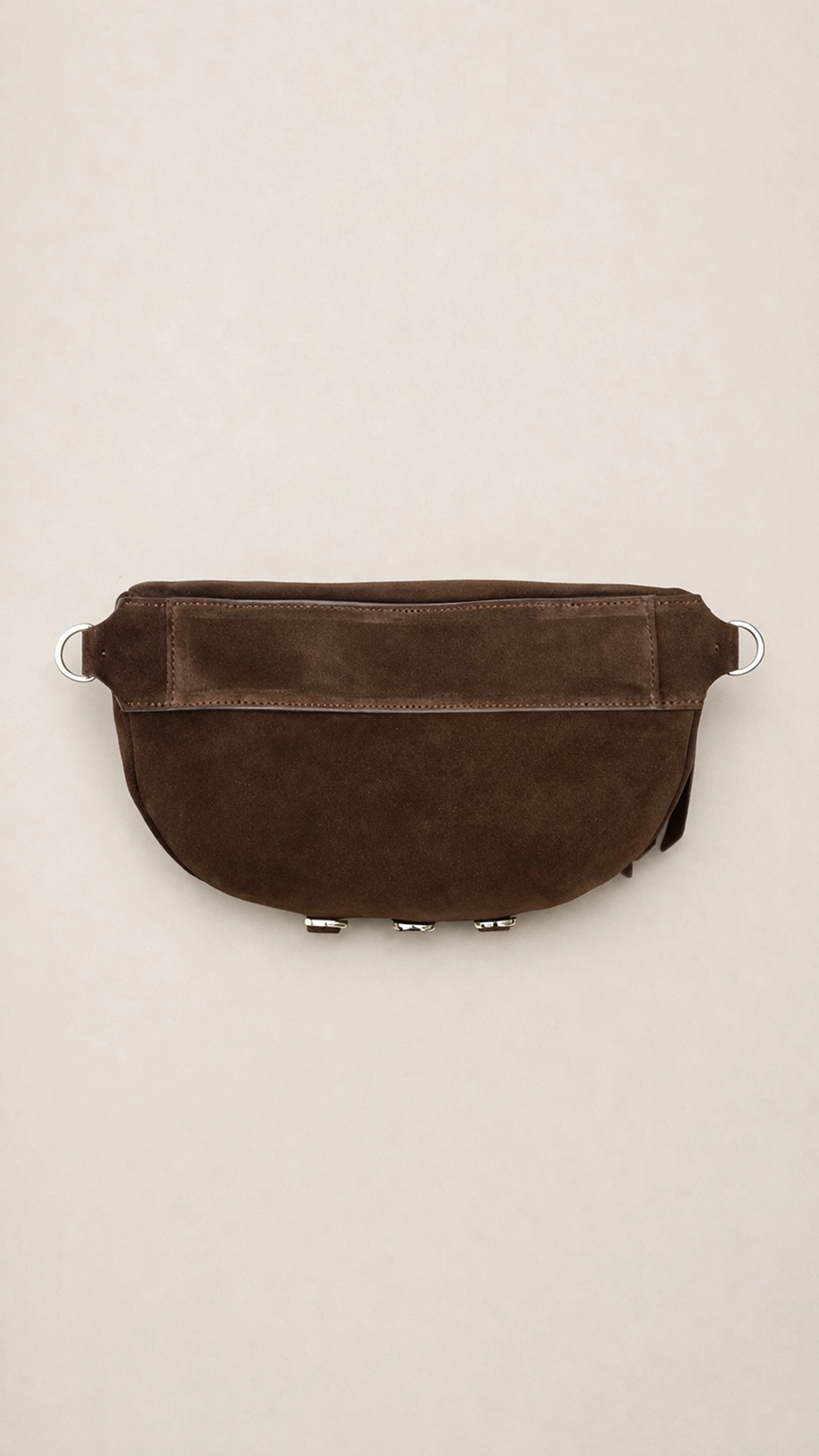Na spodzie torebki 3 złote półkola, do których dopniesz frędzle i breloki. Dwa półkola znajdują się również z tyłu torebki pod paskiem — służą do dopięcia klapy. Uniwersalny rozstaw pozwala na wymienianie klap pomiędzy różnymi modelami baz modułowych.
