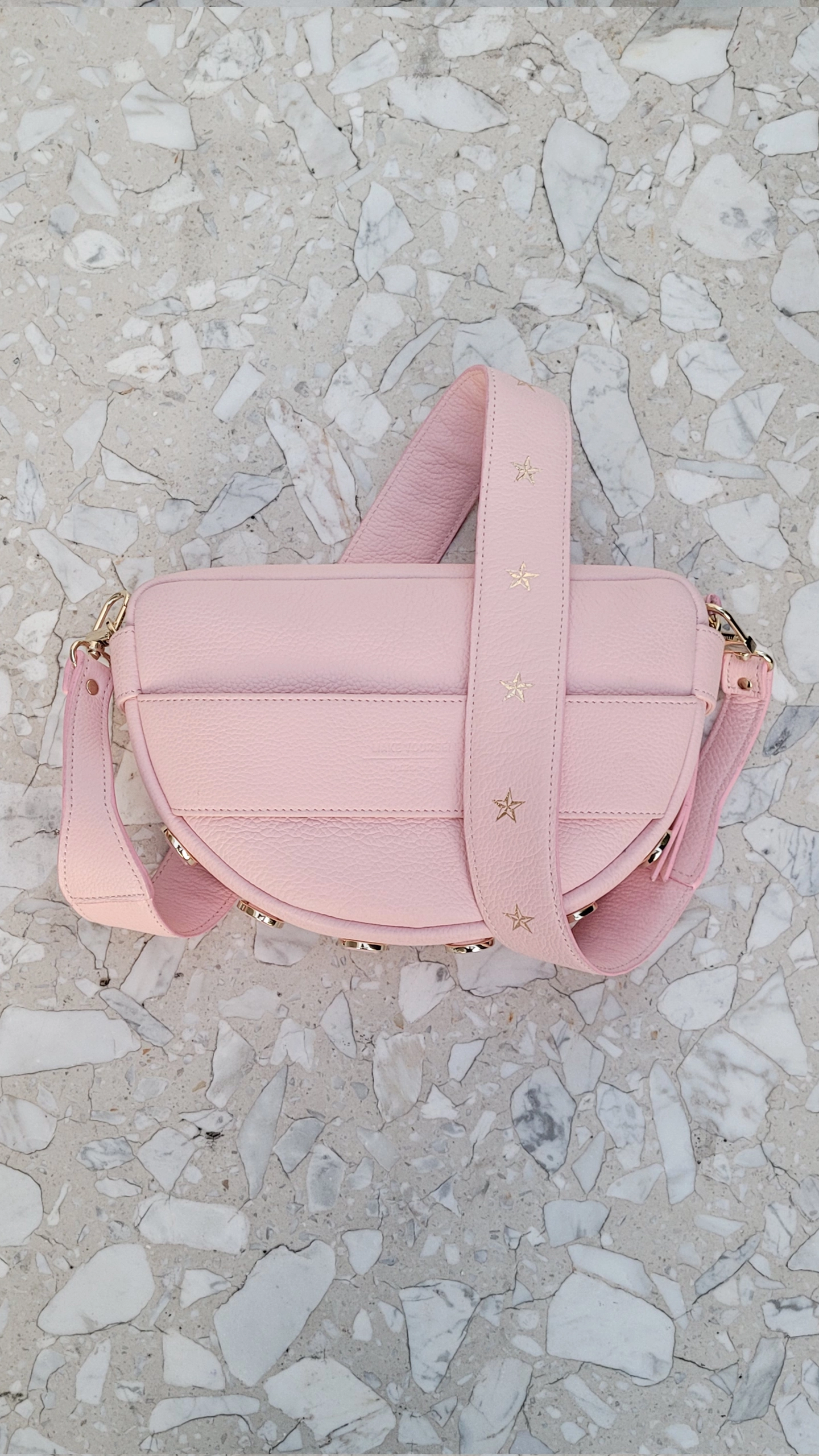 Długi ozdobny pasek STARS Rose Quartz sprawia, że półokrągła torebka listonoszka nosi się wygodnie na ramieniu i przełożona przez ramię. W zależności od stylizacji torebka sprawdzi się również jako półokrągła kopertówka z ozdobnym paskiem.