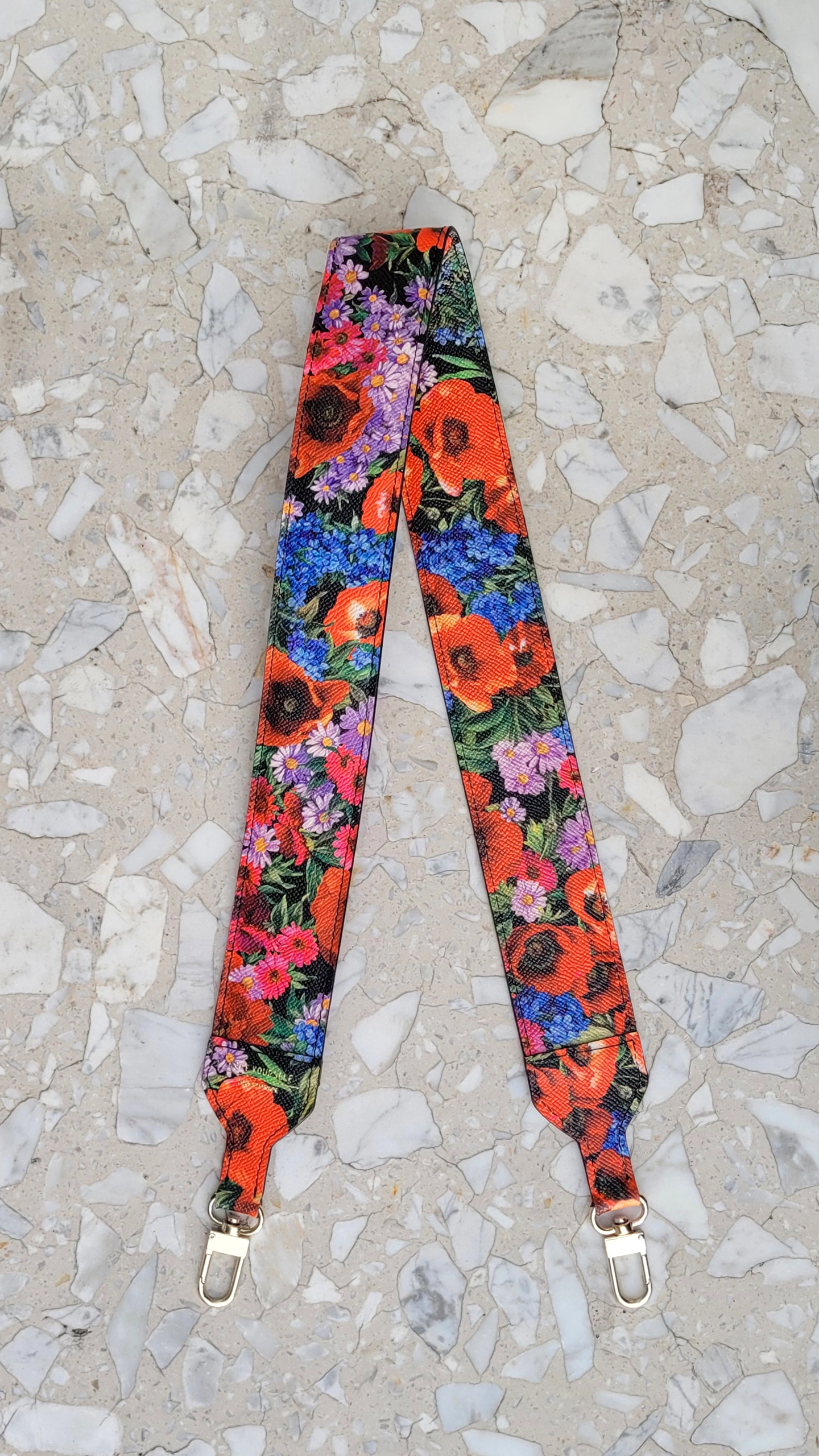 Kolorowy pasek do torebki wykonany z włoskiej skóry naturalnej. Skóra bydlęca saffiano.