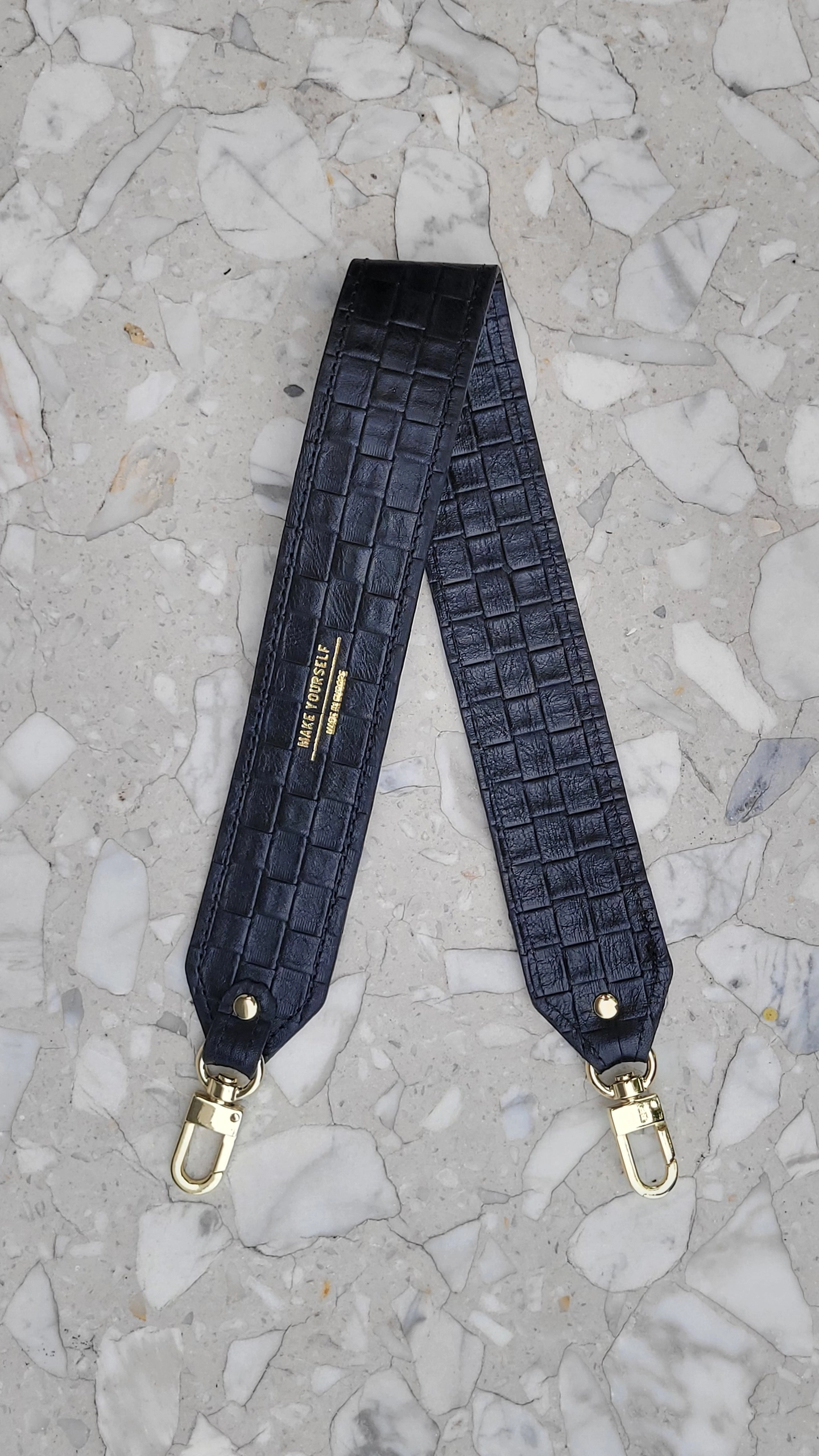 Skórzany Krótki Pasek Do Torebki Black Braid – wymienny pasek do torebki modułowej Make Yourself dopniesz za pomocą metalowych, jasnozłotych karabińczyków. Standardowa długość paska nadaje się przeważnie do wygodnego noszenia damskiej torebki na ramieniu, przedramieniu lub w ręce. Decydując się na odpowiednią długość, należy oczywiście wziąć pod uwagę osobiste preferencje oraz budowę sylwetki.