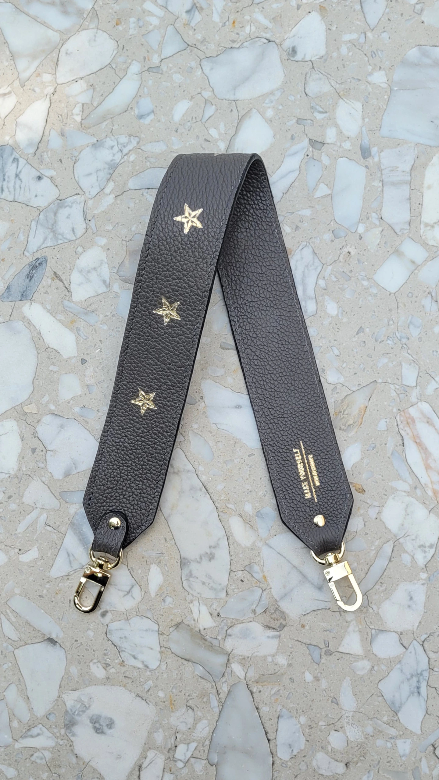 Skórzany Krótki Pasek Do Torebki graphite – wymienny pasek do torebki modułowej Make Yourself dopniesz za pomocą metalowych, jasnozłotych karabińczyków. Standardowa długość paska nadaje się przeważnie do wygodnego noszenia damskiej torebki na ramieniu, przedramieniu lub w ręce. Decydując się na odpowiednią długość, należy oczywiście wziąć pod uwagę osobiste preferencje oraz budowę sylwetki.