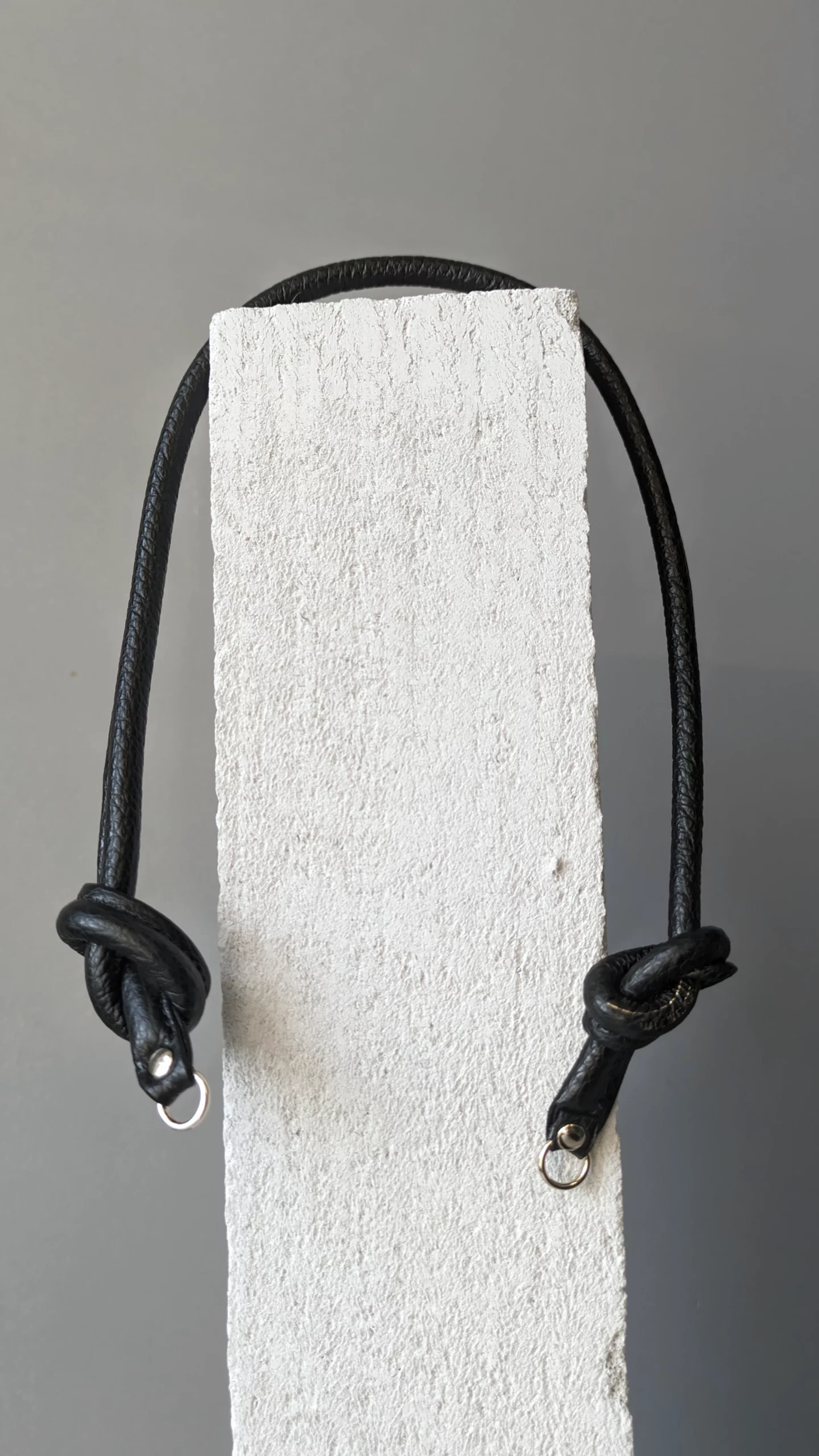 Skórzany wiązany pasek do torebki Knot Grain – wymienny pasek do torebki modułowej Make Yourself możesz dowiązać do dowolnej bazy. Standardowa długość paska nadaje się przeważnie do wygodnego noszenia damskiej torebki w ręce, na przedramieniu lub na ramieniu. Pasek nie posiada karabińczyków, jest wiązany na dowolny supeł. Końcówki wykończono kółkami, do których można dopiąć zawieszki.